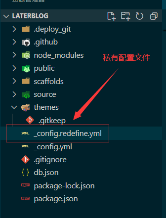 为了防止因为更新导致之前的配置丢失,我们可以在Hexo的根目录弄一个私有的配置文件,比如_config.your-theme.yml,然后把主题的_config.yml里面的内容复制到自己的私有配置文件里面去。
